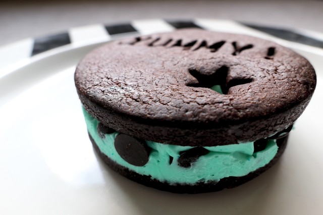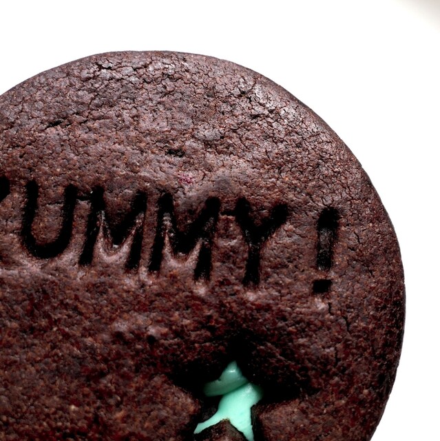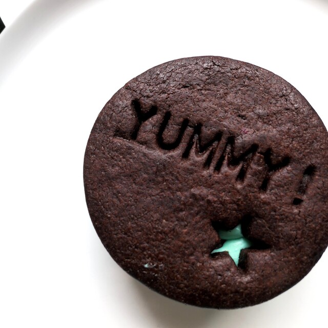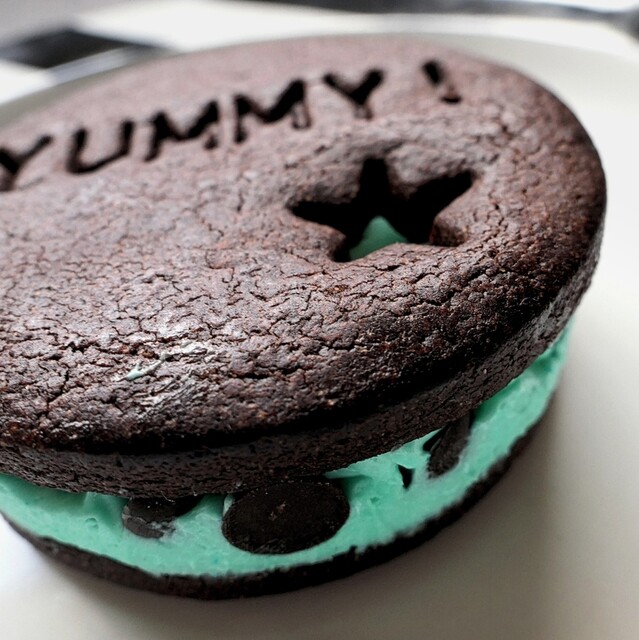 ココアクッキーでミントクリームをサンド。中にはゴロゴロチョコチップ。