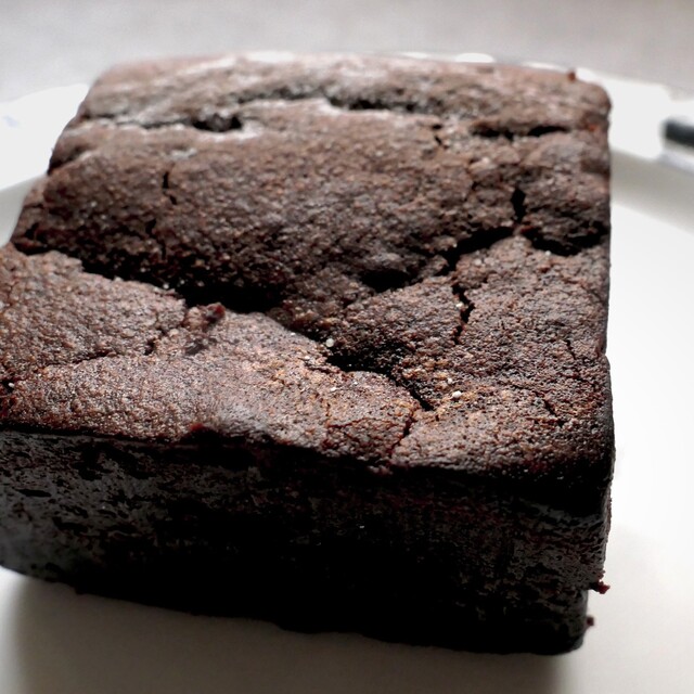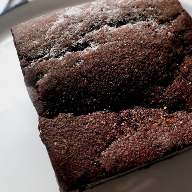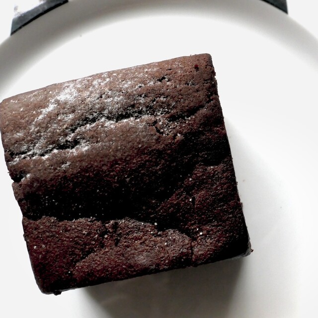 しっかり焼き込まれたスクエア型のガトーショコラ。