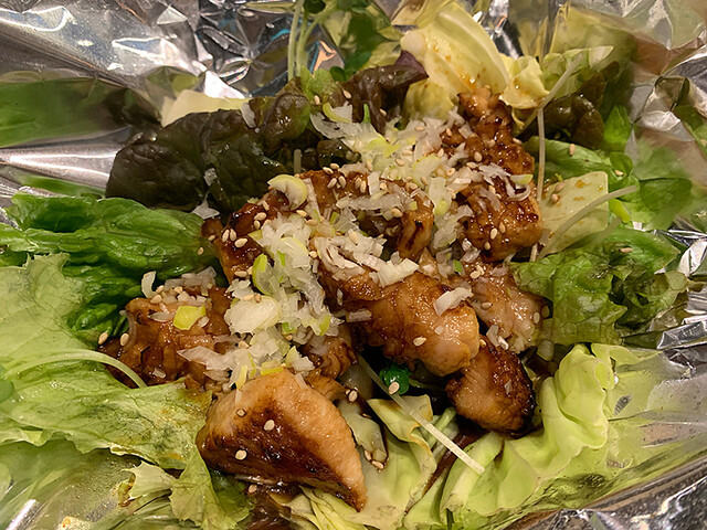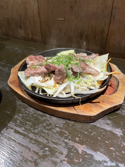 ハラミ焼やサラダ、お好み焼きなどを注文。
