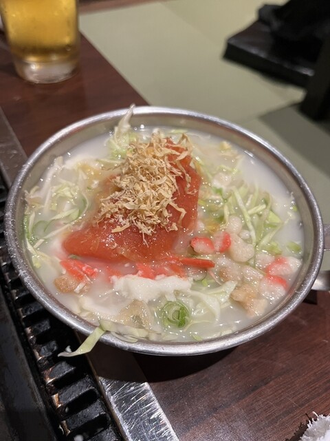 参宮橋駅前の飲食店が数店舗入る長屋のような建物の1店。2人で明太子もんじゃ、お好み焼きは豚玉、ジンギスカンと飲み物1杯ずつで4,800円。鉄板のある座敷席は2卓、あとはカウンターで、店舗は狭小だが特に...