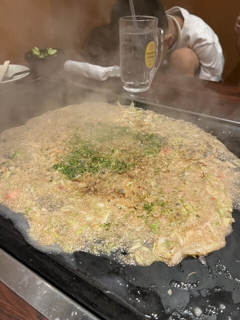 友人と夜ご飯を食べる事になり、焼肉、イタリアン、お寿司の中から『今日はお好み焼き!』と言う彼女のチョイスで『えん』さんに伺いました^ ^