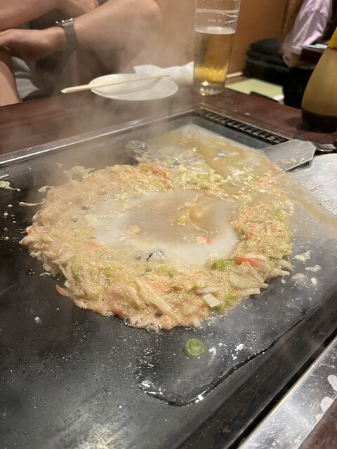お好み焼き、牡蠣は店主が焼いてくれます。