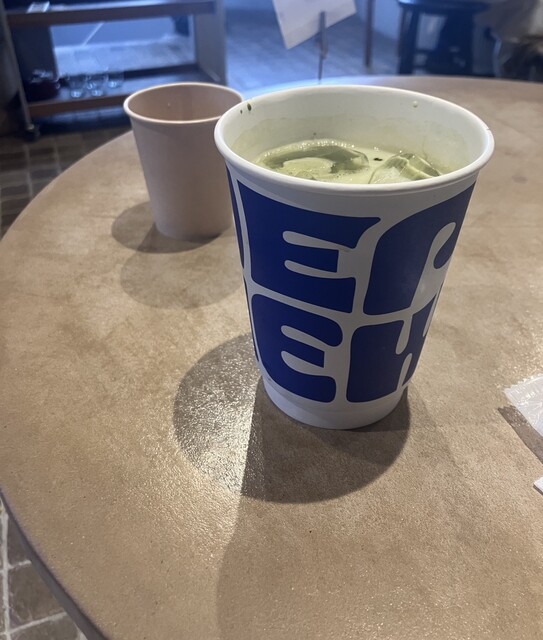 まず店内がかわいい!青と白を基調としたデザイン性溢れる店内。アパレル商品も扱っている。店内はビートルズの音楽。休日の14時頃だったが3分ほど並んで入店し、イートインもできた。気温が高い日に飲みたくなる...