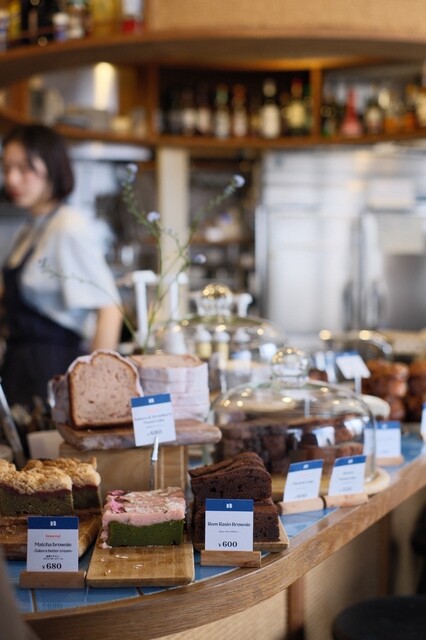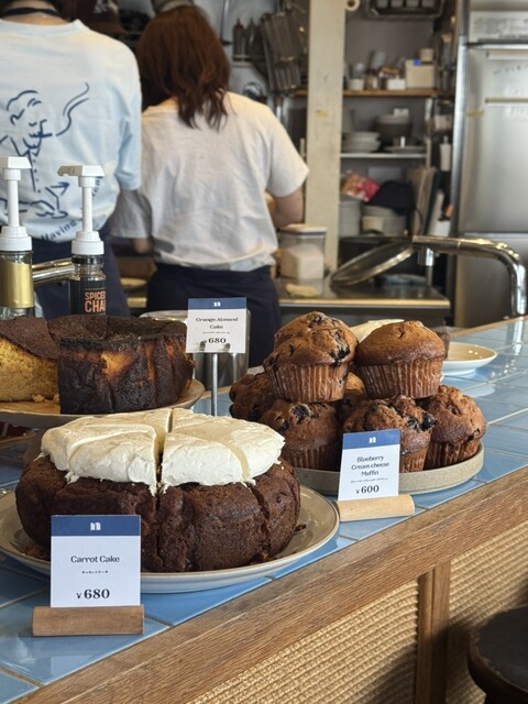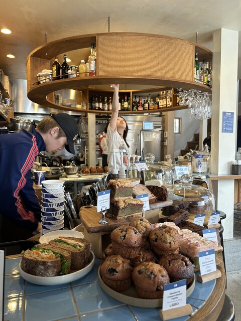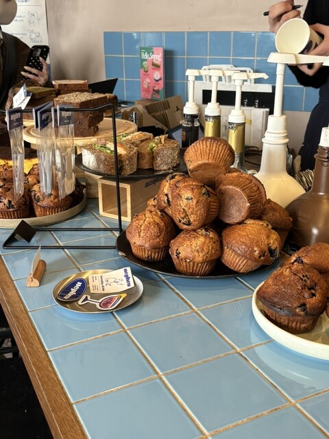 ショーケースに並ぶマフィンや焼き菓子は、見た目からしておいしそうで選...