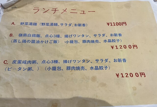提供も早くボリュームもありコスパがとてもよかったです。写真に天心3品ついて1,100円だったかな?おかゆも味が薄すぎず濃すぎずた...