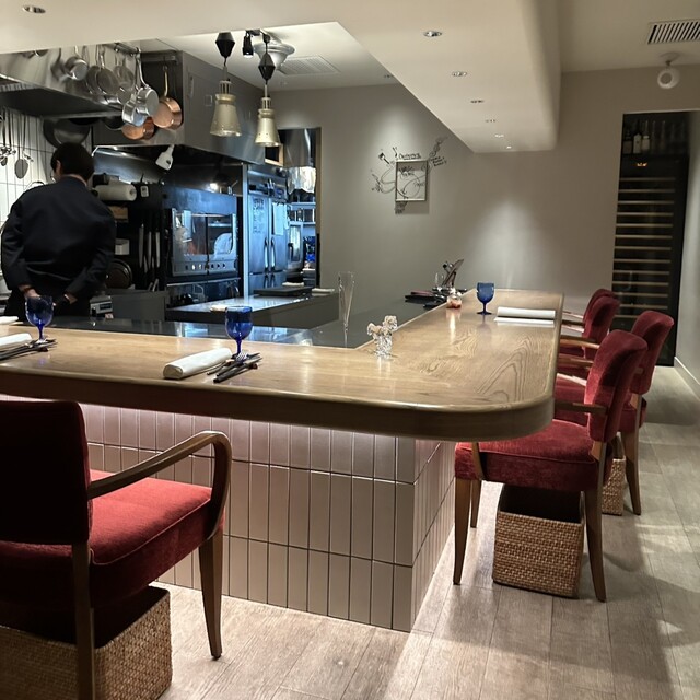 目の前がキッチンで、シェフの調理する様子を間近で見られる...