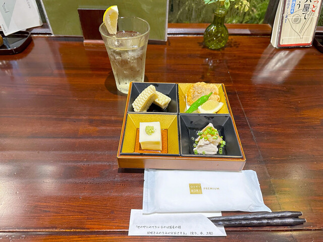 | ドリンク | ワインあり、日本酒にこだわる、焼酎にこだわる |