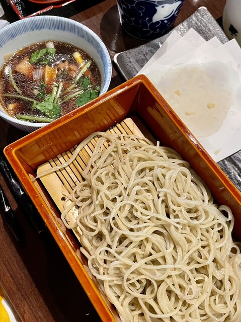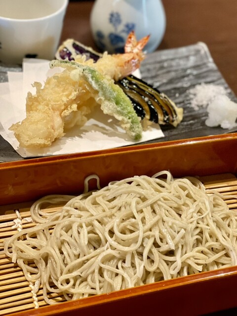 お取引様とのランチで連れて行っていただいたお店。 ご一緒した方におすすめされて、楽膳をセレクト。 天ぷらとせいろと鴨南蛮も楽しめるセット。 3〜4口くらいのご飯がサービスで付けられるとの事で「絶対食べた方が良いです!」とアドバイスしていただきそちらもオーダー。そばクレープかミニご飯のいずれかを... 詳細を見る