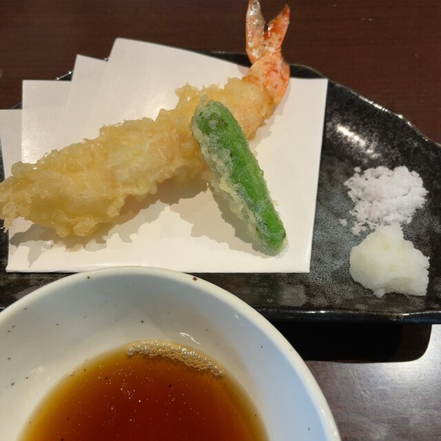 お取引様とのランチで連れて行っていただいたお店。 ご一緒した方におすすめされて、楽膳をセレクト。 天ぷらとせいろと鴨南蛮も楽しめるセット。 3〜4口くらいのご飯がサービスで付けられるとの事で「絶対食べた方が良いです!」とアドバイスしていただきそちらもオーダー。そばクレープかミニご飯のいずれかを... 詳細を見る