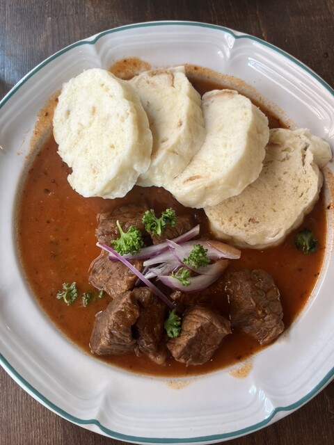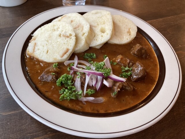 チェコ料理のお店に伺いました。 店内はダークブラウンの木のぬくもりが感じられ、落ち着きます。 ヨーロッパの田舎にありそうな素朴な雰囲気が素敵です。 メニューを見ても いまいちどんなのか分からない、初めて食べるお料理はそんなワクワク感も楽しみのひとつです。 豚のお料理にしてみました。 ・... 詳細を見る