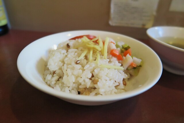 今回は単品で、大根と搾菜の水餃子5個と、ハトムギご飯(小)を注文しました。