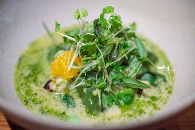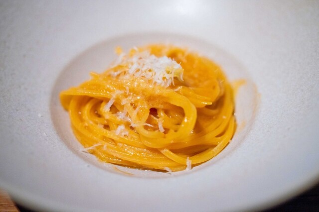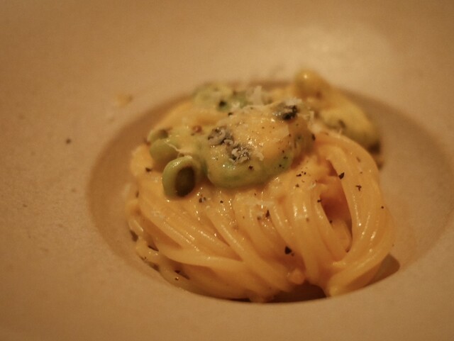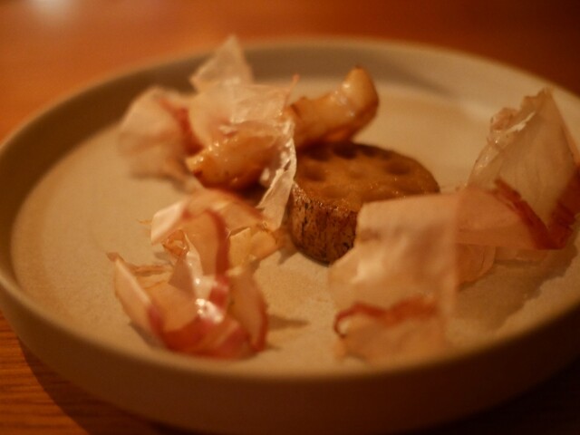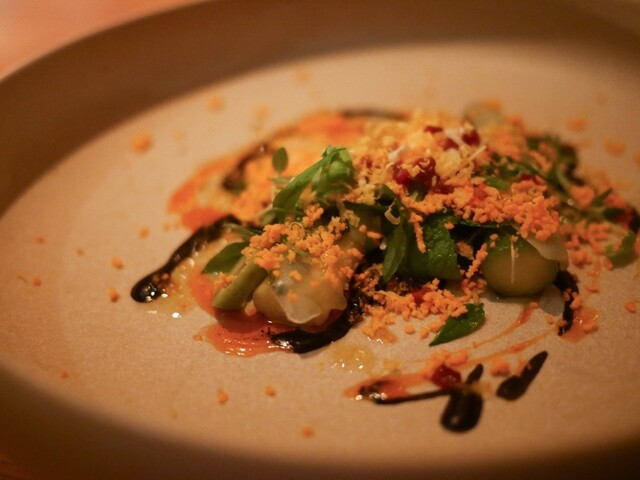 ここの料理は甘味、苦味、酸味などが複雑に絡み、五味すべての味覚に訴えかけてくる。今日は甘味がメインの料理が多かったが食べ進めていくとだんだん美味しさのポイントが鮮明になってくる。最後は感動が味わえるのだ。店のコンセプトは五味➕1とのこと。つまり五味以上のプラス1を投げかけてくるのだ。さらに食感を大事にしていて、いろいろな食材で緩急の変化をつけてくる。百聞は一見にしかず。是非一度お試しください。今...