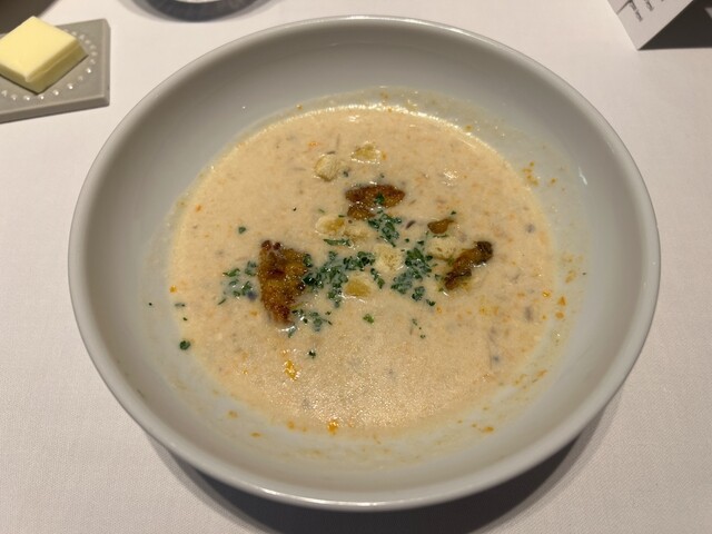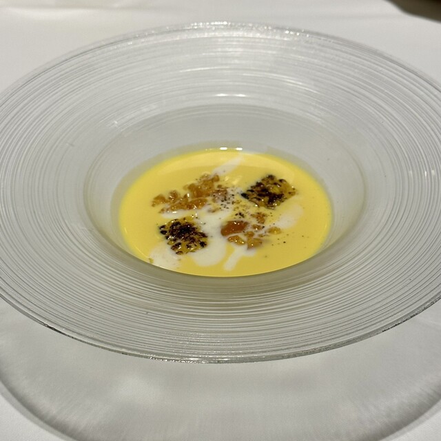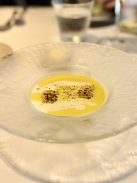 バターナッツ冷製スープは、生姜が効いていて無茶苦茶美味しい。これだけでも訪問の価値がある。