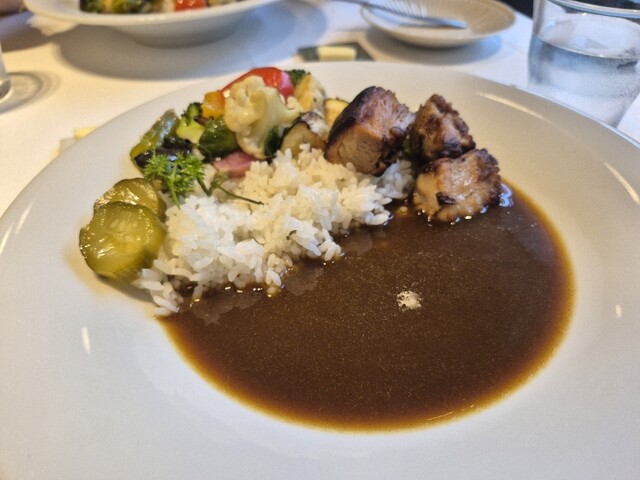 メインディッシュは、ソースキュリー✕2、それぞれ豚バラと和牛すね肉をトッピング、ソー...