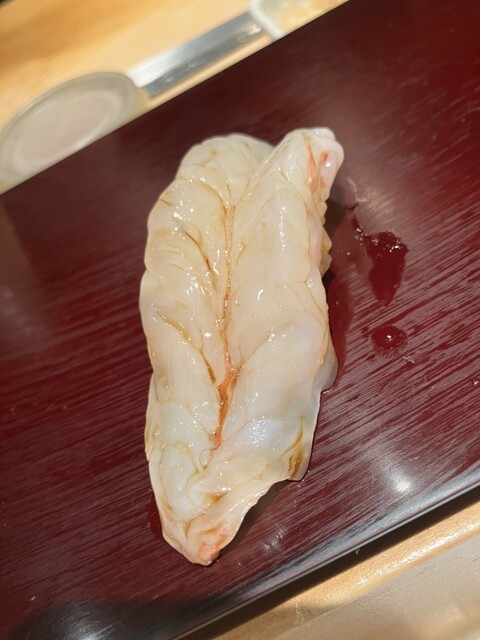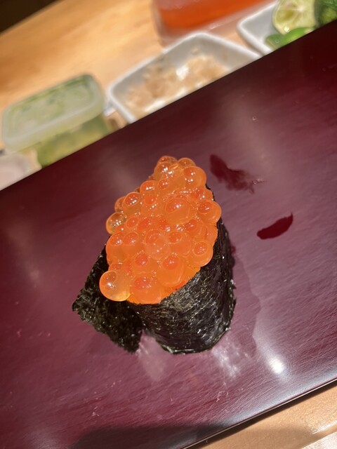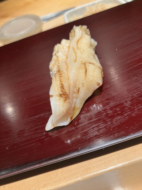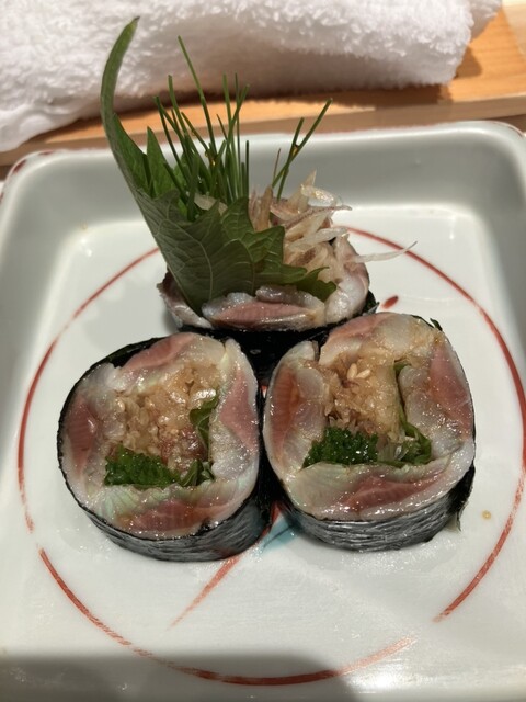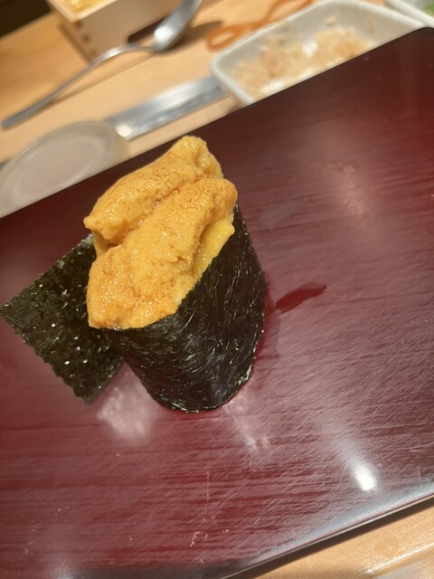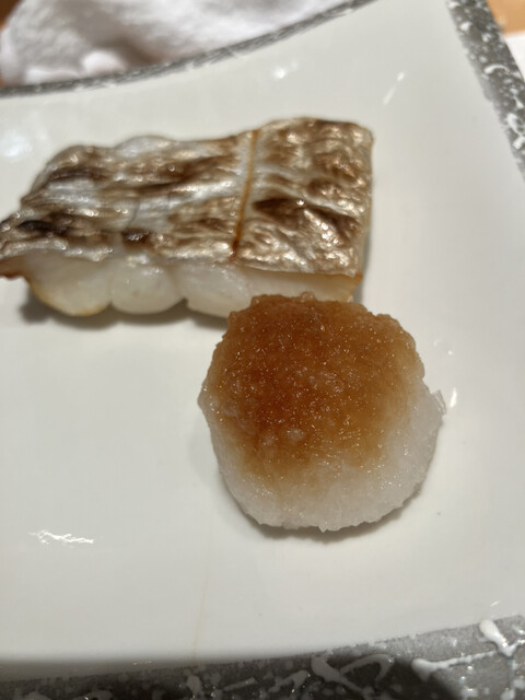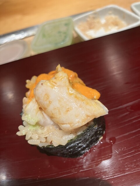 脂が乗ったのどぐろを焼いてウニと一緒に巻いたもの。脂が乗ったのどぐろと甘いウニのハーモニーがとんでもない旨みを生み出す衝撃の逸品。