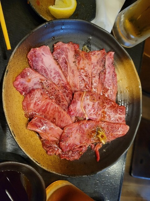 今回はダメもとで当日電話したところ、二巡目なら空いてるよとのことで訪問。タン塩は売り切れだったので上タンを注文、あとは盛合せにお好みの品を幾つかオーダー。冷麺も売り切れになるので最... 詳細を見る