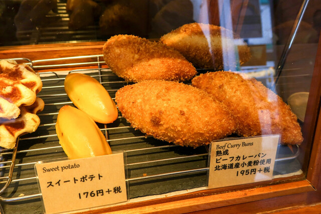 ラムレーズンクリームとカレーパンとワッフル購入。