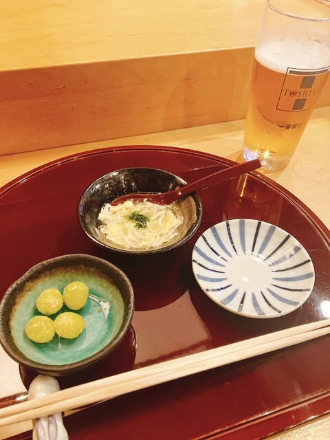 アルコールは飲まない予定が、お店の雰囲気や、旨そうな鮨たちを見て、即決。