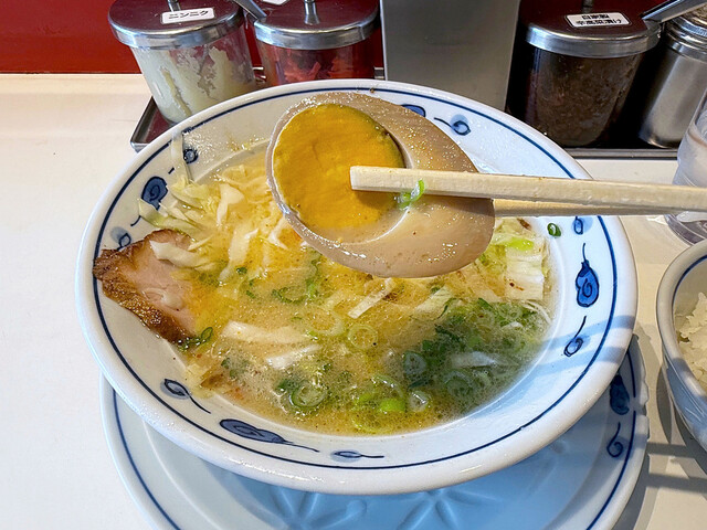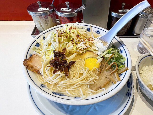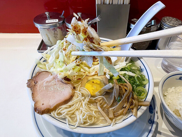 今月は結構当店にお訪ねすることができた。この食べ物は冬のイメージだけど、私的には、暑い夏ガーッとこれを食えば、再び炎暑に飛び込んでゆけるガッツを授かる気がするし,なんなら消化も良い気がするのでした。 ラーメン:よくよく味わえばニオイもするし、けれんみも感じる。だけど甘いアタックに図太い旨味が明... 詳細を見る