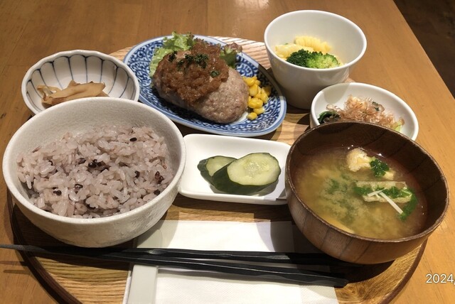 ランチは肉か魚のコースの選択式でそれぞれ1100円、土日限定のデミグラスハンバーグランチは1500円と、自然派レストランとしては、リーズナブルです。これ以外にカレーがあるだけで、メニューは少なめですが、日替わりが変わるので、飽きずに通えると思います。
