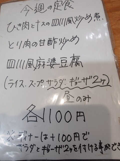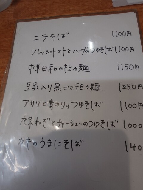 日曜日でもランチメニューあり、今月は麻婆の月でした。裏面の定番ランチから大好きな九条葱とチャーシューのつゆそば(1,000円)をオーダー。カウンター越しに店主の所作、中華鍋を振る音を心地よく聞きながらしばらく時間が過ぎて着どーん。緑というよりつやのある深緑の九条が一面に乗っています。まずスープから、微かなごま油とラー油、山椒が効いていてとても味わい深い。ずっとすすっていたい。麺とスープのバランスが崩れそうなので、麺へ。中華麺というより白いストレートな麺で、飽きのこない中華そばなのです。そして九条葱は一度炒めてあって、新鮮さが増すような、シャキシャキが更に増している感じがしました。ギリギリまでスープも頂き感謝をこめてお代を払い退出。是非これを目指してこられても価値があるお店です。つゆそばだけではなく、四川料理のお店のようで、担々麺も是非。小田急線の誇れるお店です。飲める方は、日曜日お昼からビールにあう料理があり、ゆったり時間が流れていくお店だと思います。