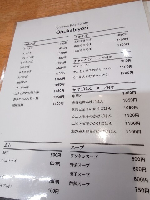日曜日11:40草野球の帰り道、バスから小田急線へ千歳船橋で乗り換え。千歳船橋駅の周辺には多くの中華がありますが、目指す中華日和さんは別格。もう20年位前千歳船橋の南側にあったときからお邪魔しています。店主がカッコ良い。出される料理が店主の身なりから品がある。私の主張です。