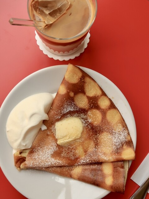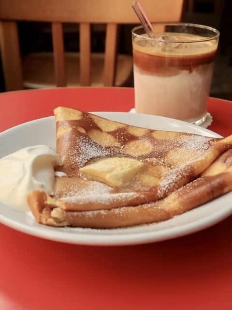 クレープで有名なこちらのカフェ!! 13時ごろに行ったら入れたけど、 出る頃には数組待っていたので、やはり人気店は早めに行くのが吉。 予約は不可だよ〜〜 店内は狭めで、カウンターが5席と小さな2名丸テーブルが4つくらい? テーブルは真っ赤で超かわいい^^ 食事はなくて、クレープの... 詳細を見る