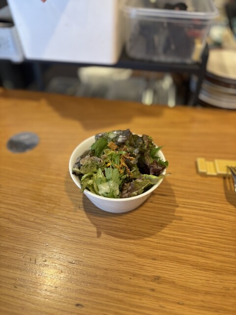 豪徳寺の商店街にあるワイン食堂。 本日のオイルパスタ、1,500円。 菜の花とベーコンのオイルパスタ、サラダ、パン。 店内に満ちるガーリックのいい匂いが集約されたようなパ... 詳細を見る