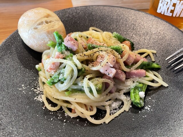 菜の花のえぐみは全然なく、ベーコンも量が多い。