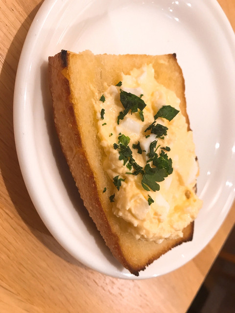 バケットの上に卵ペースト。バケットがパリッと焼き上げられていてちょうど良い。で、卵ペーストもそんなに酸味が強いものではなくちょうど良い味付け。これ美味しい。もっと食べたかった。