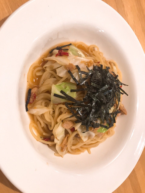 ●ツナとキャベツのペペロンチーノしょうゆ(セット付きさ・税別600円)