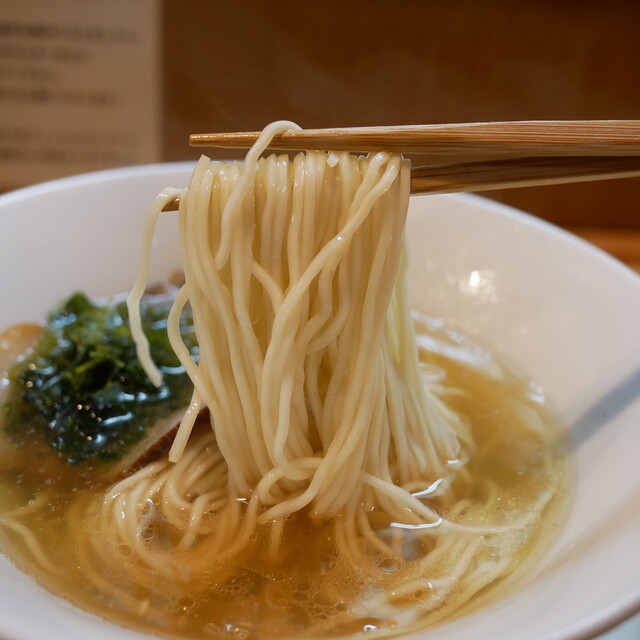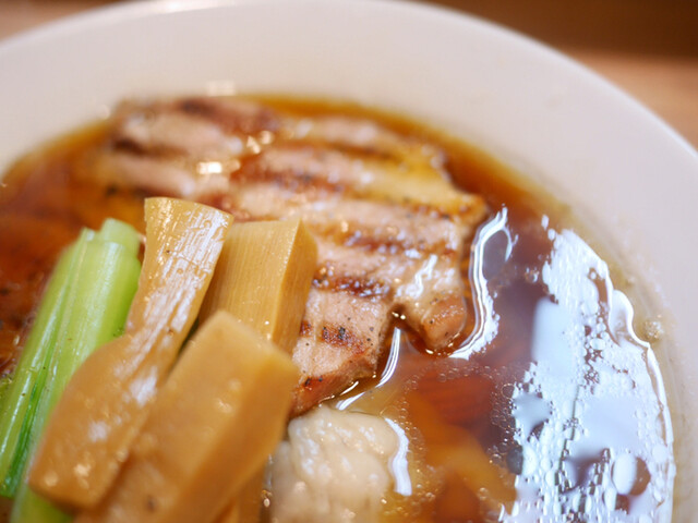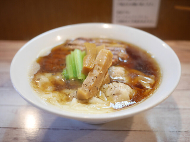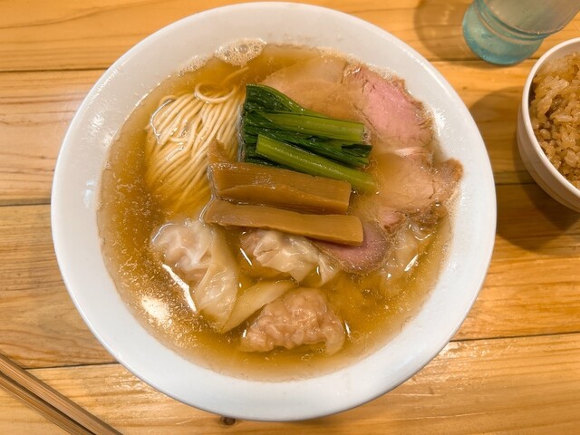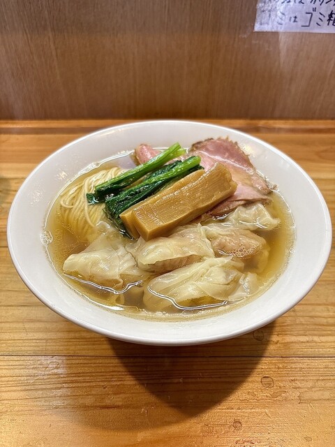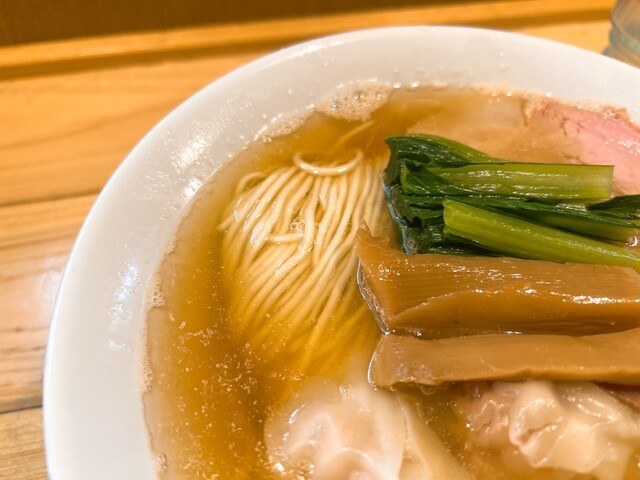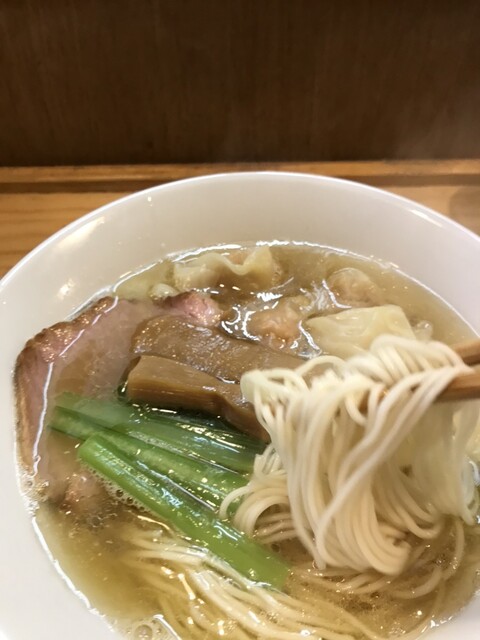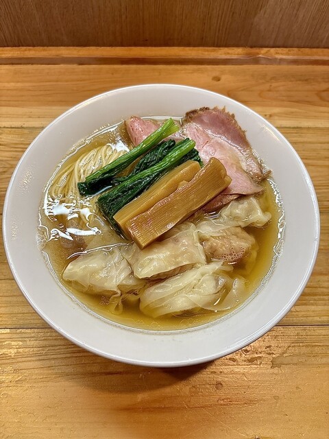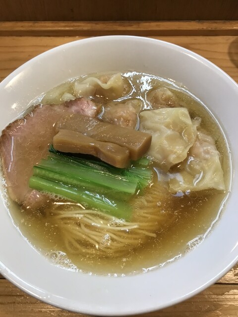スープは上品な煮干。苦みもなくゴテっとしたザラザラ系ではなく澄んでいるのに濃厚な煮干の味と香りが素晴らしい 具は わんたん たっぷり6個くらい入っていて生姜の香りの効いたあんが良い。 大判のチャーシューは少しスモークが効いていてジューシーで良。 甘めのメンマは拍子切りで2本、ちょい硬めの歯... 詳細を見る