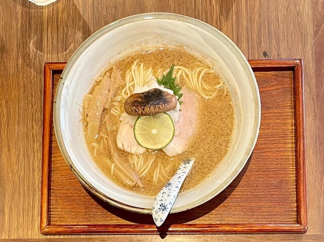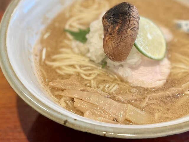 秋刀魚の旨みと少しの苦味、そして香ばしさが感じられる、まさに秋刀魚のスープ。タレは白醤油だろうか、違ったらすみません。秋刀魚を焼いているのはわかるが、どのように何と合わせているのかは想像がつかない。まぁ、とても上質で美味しいスープであることは間違いない。