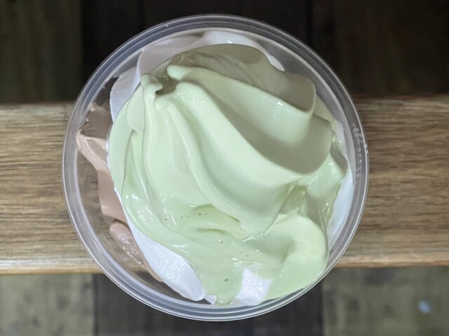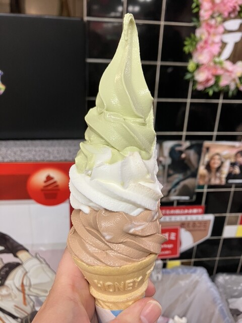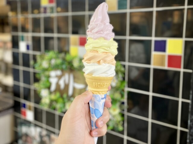 フレーバーを何段にも重ねた、マンガのような夢のソフトクリームを食べられて最高です!