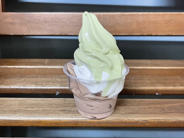 平日の中野、おやつどき。少し何か食べたくなり、ブロードウェイ地下のこちらへ、初訪問。 でっかい8段タワーはもちろん敬して避け、 小サイズのコーンを選び、「バニラとチョコで」と伝えると、 お店の方が「まぜていいですか。」 まさに望むところです! 【小(コーン)バニラ&チョコミックス】 ... 詳細を見る