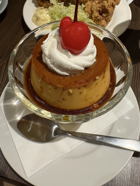 ランチはミックスフライ定食、プリンとブレンドをいただきました!