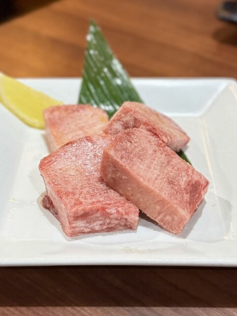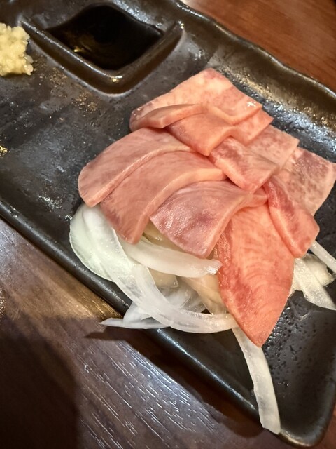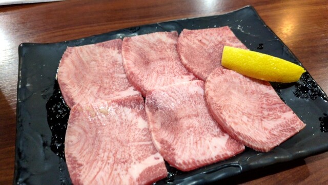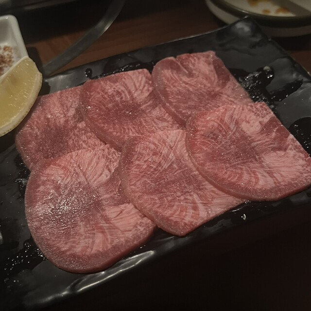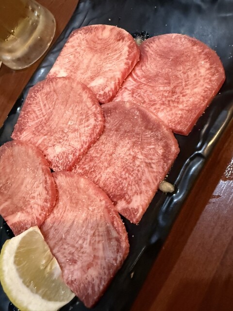 まずは1皿目、牛タン四点盛り(タンすじ・タン塩・上タン塩・厚切り上タン塩)からスタート。青唐酢ダ...