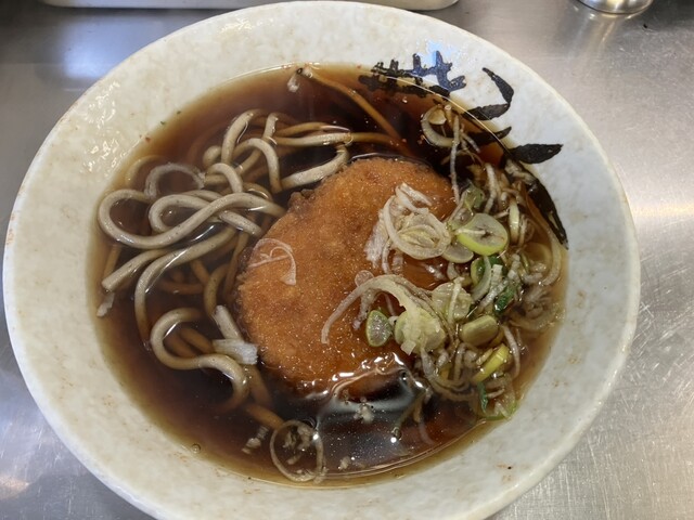 5人で満員になってしまうお店の暖簾をくぐり、口頭にて「コロッケそば(ハーフ)380円」を頼んます!