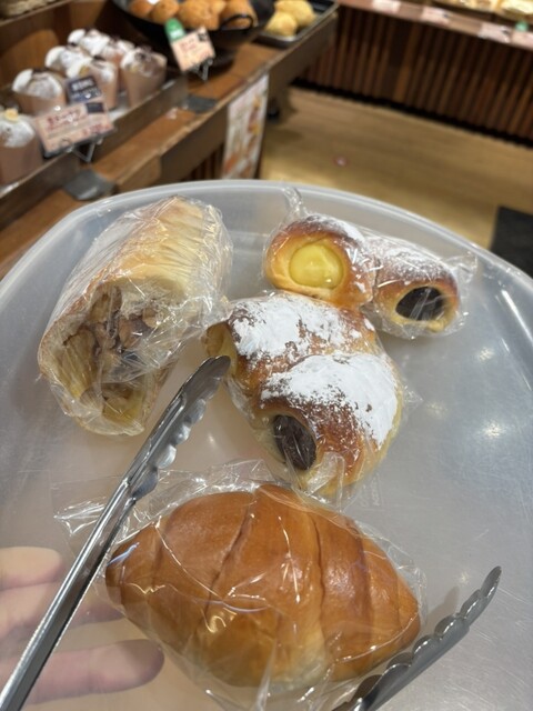 トレーに乗せてレジまで持って行くけど、夜の時間はほとんどのパンが袋に入ってたから持ってく...