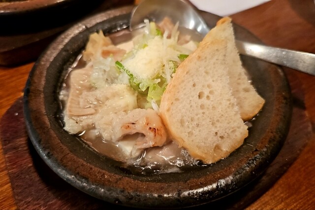 ずっと気になっていたこちら。遅い時間に一人で入れました!2人以上は基本予約必須と思います。 初めて来たので店員さんにオススメも教えて頂き、煮込み塩チーズ、海老春巻ブルーチーズ... 詳細を見る