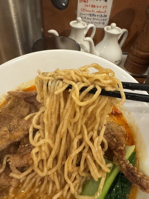 スープはゴマのコクが非常に濃厚ながら、重すぎず後味は意外とキレがあるタ...