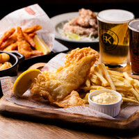 冷菜からアヒージョ、定番のフィッシュ&チップスなどお料理5品付いたコース。飲み放題付き!!5〜8種の自家製クラフトビール、サワー、ビアカクテル、ハイボール、自社輸入ワイン、ソフトドリンクが飲み放題!!お席120分制。(10分前ラストオーダー) ※お飲み物はカウンターでご注文・お受け渡しとなります。