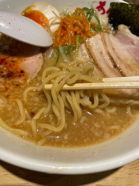 背脂濃厚なホープ系ラーメン。 あまり普段ホープ系は食べる機会がないですが、気になっていたので入店! 平日の14時前後だったからか、店内空いていました。 はじめてだったので... 詳細を見る