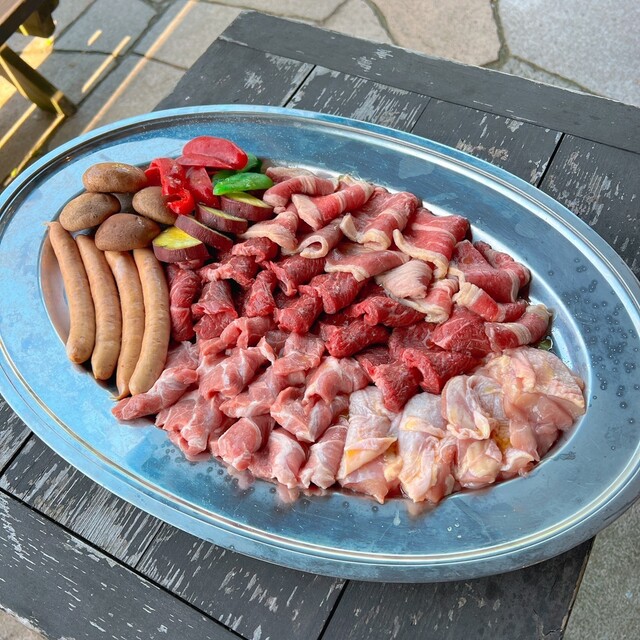 「●料理のみ【初めての方におすすめ!me at park コース】大人気コースお一人様【メイン牛・豚・鶏3種のお肉盛り合わせ!大満足のボリューム!】」がおすすめです。