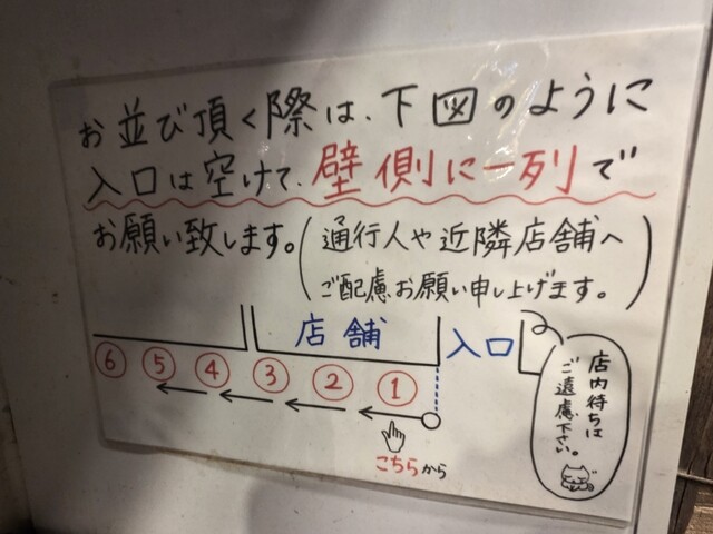 店内を見るとちょうど2人がコートを脱いで座るのが見えて納得。寒さはそれほど厳しくなかったので電書を読みながら待ちます。15分ほどして入ることができました。