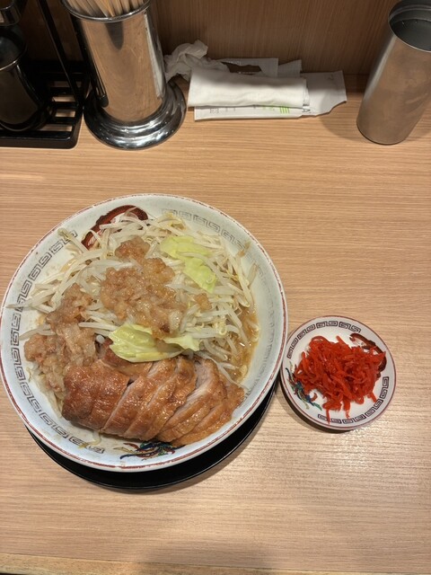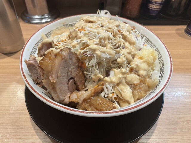豚山中野店で「大豚 味噌山(にんにく少し、ヤサイ抜き、アブラ、ショウガ)」をいただきました。 さらに白髪ねぎとうずらをトッピングして、完璧な布陣。味噌山ヤサイ抜きにして白髪ねぎに置き換える。これがベスト。 もう結論から言ってしまうと“豚の旨みの暴力”です。 想像の上をいく濃厚さと深みで、ひと口... 詳細を見る