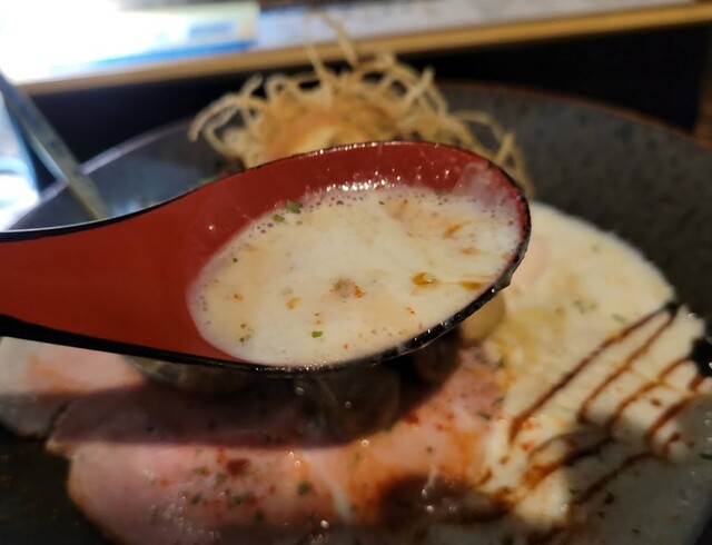 中野でずっと気になっていたこちらの牡蠣ラーメン! 北口から歩いて、中野ブロードウェイの近くの小道にあります。 14年間フレンチ1本で料理を学び続けたシェフが辿り着いた、和の食材を使ったフレンチラーメンとのこと…期待大! 外観からラーメン屋っぽくない、モダンでシックな印象! はじめに食... 詳細を見る