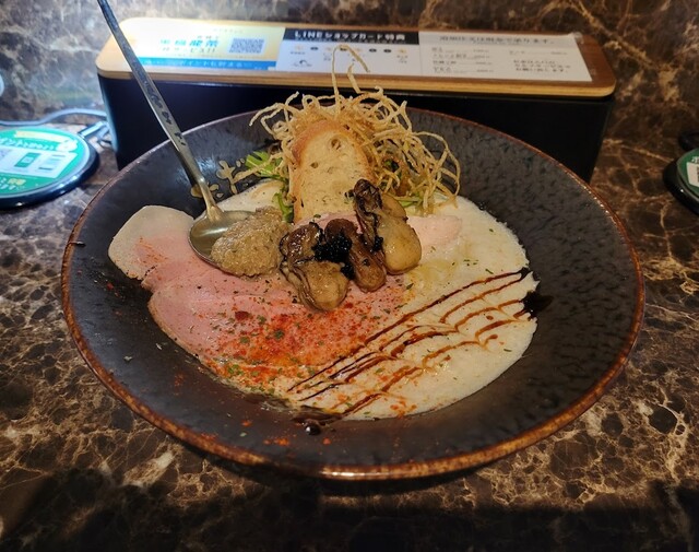 中野駅北口から徒歩5分ほどの路地にある人気ラーメン店です。牡蠣を主役に据えた独創的なラーメンで知られ、ミシュラン2つ星レストランでの経験を持つシェフがフレンチの技術を取り入れた一杯... 詳細を見る