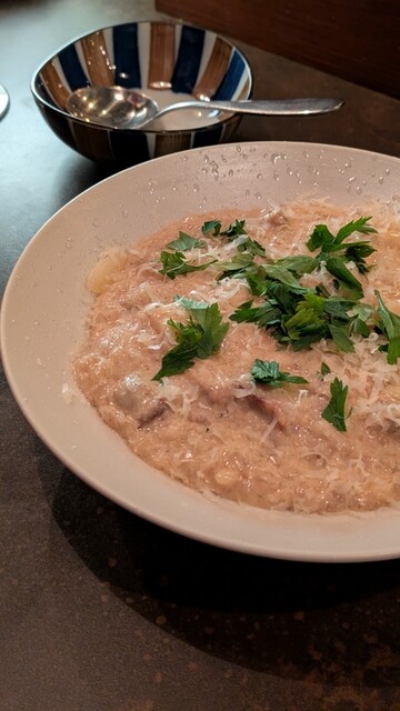季節の味わいを感じられるコースで、紫芋のニョッキ スーコ・アロスト(北イタリア伝統の肉のソース)、かぼちゃのクリーム バルサミコ、東の匠豚肩ロースのパン粉焼き、そしてかぼちゃのバスクチーズケーキをいた...
