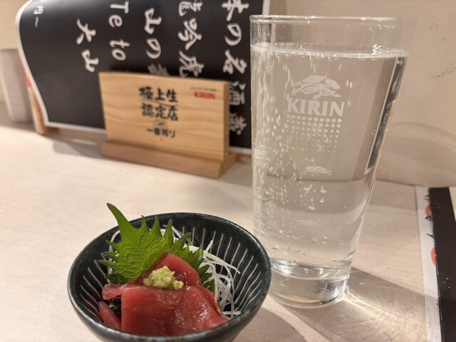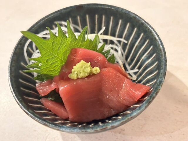 食べログでおひとり様予約ができるお店、大好きです。予約の18:45、入店するとまだ店内は空いていました。カウンター右隣には同僚同士らしき男性2名がカウンター越しに大将と仲良さげに話していたので、常連さんかな?少しすると左側に可愛らしい女の子がひとり着席。店員さんの彼女らしく、時折甲斐甲斐しく飲食物を運ぶ男の子が目の端に映りました。でもお仕事中ですから、彼女は基本ひとり。ということで、私がナンパさ...